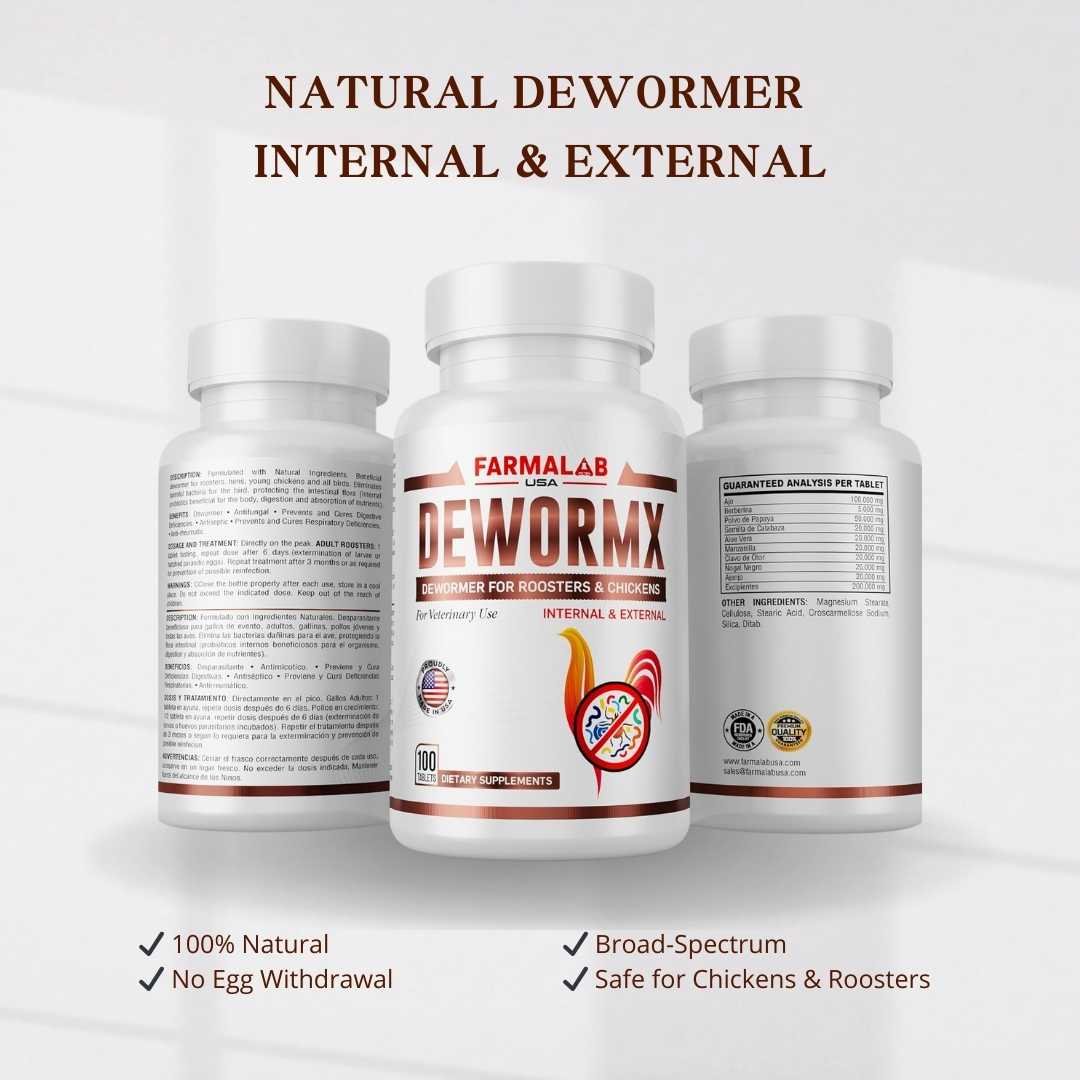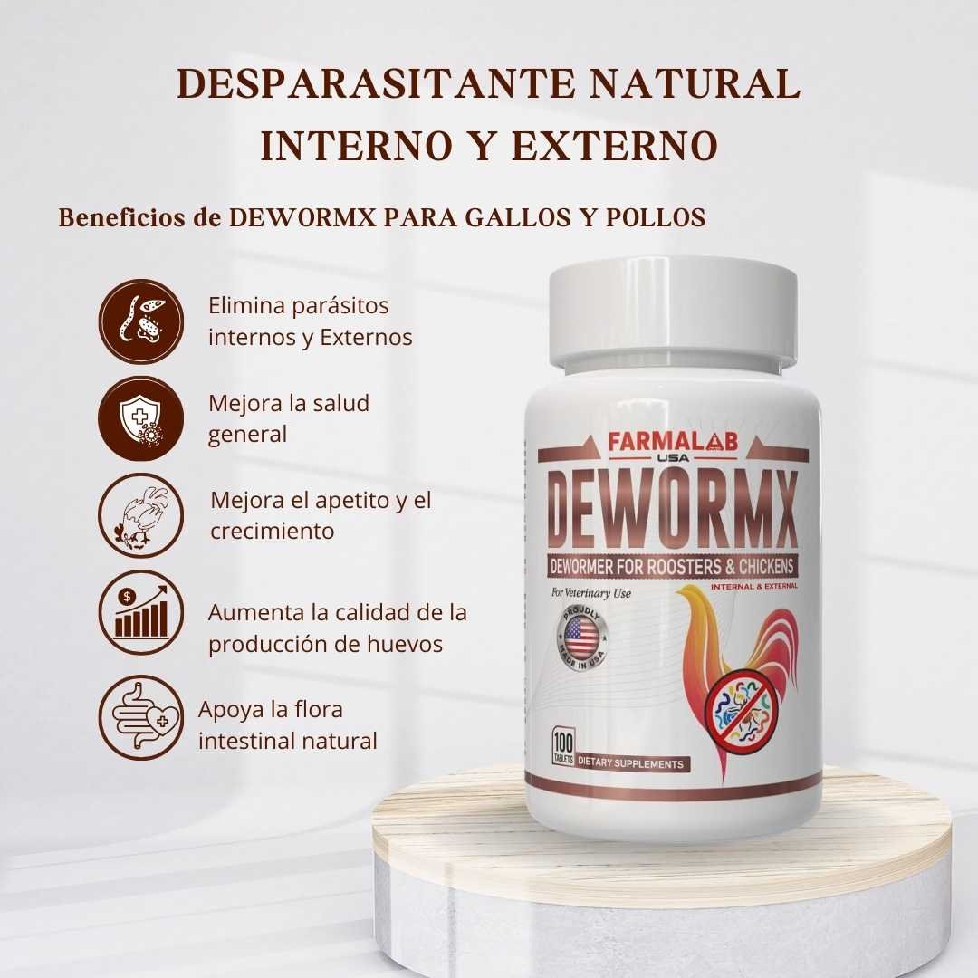 DEWORMX Roosters & Chickens– 60 Tabs |FARMALAB | Parasite Cleanse Formula | Antiparasitario para gallos y Gallinas